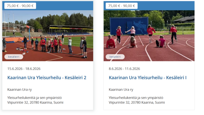 Kaarinan Ura Yleisurheilu järjestää kesäleirit alakouluikäisille.
