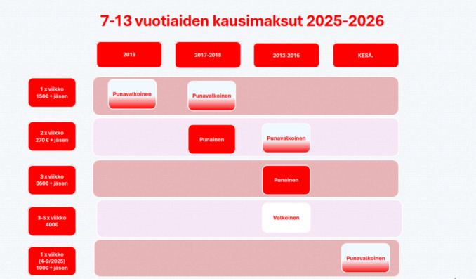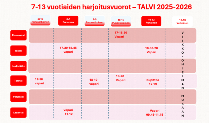 ![]() Ryhmät ja harjoitusajat talvi 2025-2026 |